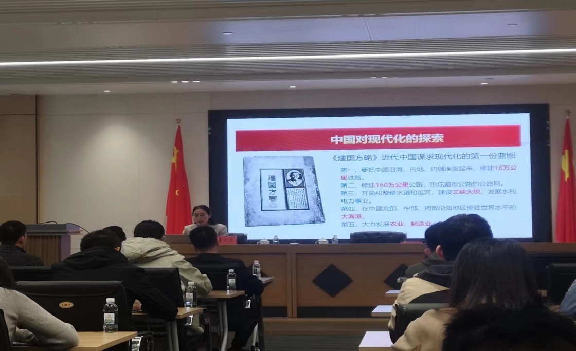 宣讲过程中,姜文文主任先是深入浅出地介绍了什么是现代化以及西方和中国的现代化历程,又从历史角度分析三次工业革命在推动现代化发展过程中的关键作用,重点强调在中国共产党的领导下,我们抓住了第三次工业革命的机遇,努力发展现代化,并在新时代成功推进和拓展了中国式现代化。