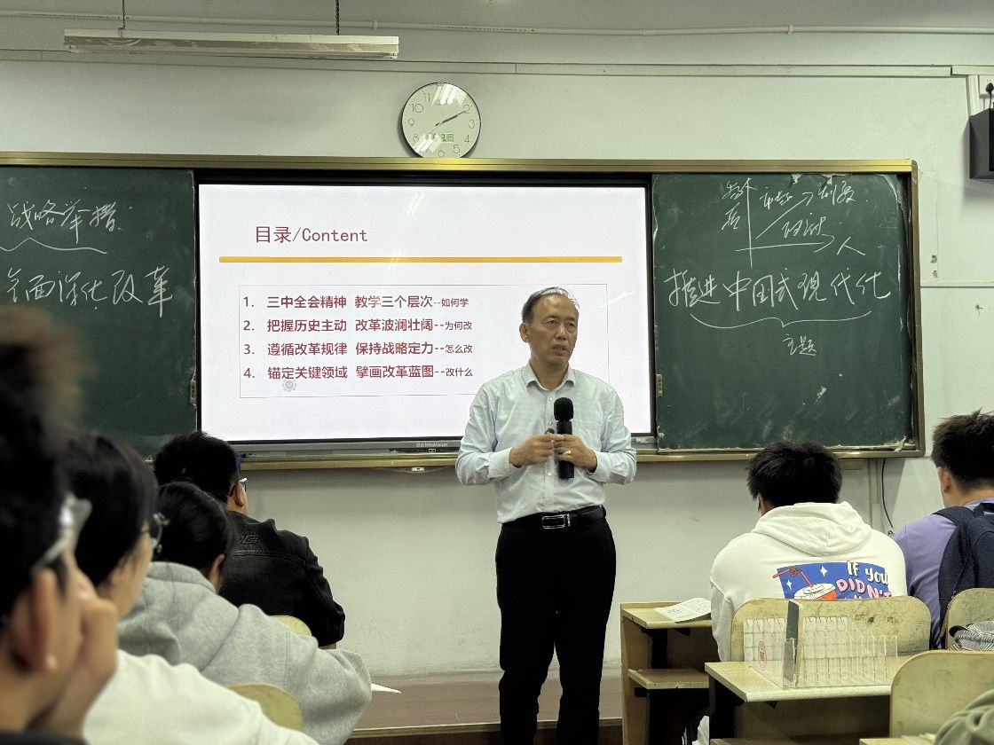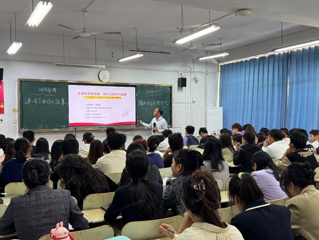 党的二十届三中全会,是在以中国式现代化全面推进强国建设、民族复兴历史伟业的关键时刻召开的重要会议。为深入学习宣传贯彻党的二十届三中全会精神,推动学院师生深刻认识进一步全面深化改革、推进中国式现代化的重要意义,10月16日下午,2026年国际足联世界杯毛泽东思想和中国特色社会主义理论体系概论教研室、习近平新时代中国特色社会主义思想概论教研室、形势与政策教研室全体教师共同学习二十届三中全会精神专题课。郝明杨教授以“改革的实践续篇 现代化的时代新篇”为主题对党的二十届三中全会精神进行解读。