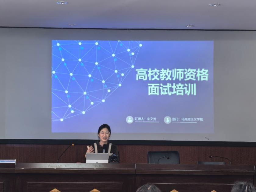 培训会上,具有丰富授课经验的青年教师宋文芳,围绕面试流程、试讲流程、试讲技巧及答辩要求等内容展开详细讲解。她结合生动具体的案例进行示范,重点剖析了说课及试讲、教学设计与课堂表现的核心要点。同时,特别提醒新教师在试讲过程中要注重教学内容的逻辑性、与学生的互动性,以及思政元素在课堂中的自然融入。此外,宋文芳老师还针对面试中可能出现的突发情况,如设备故障、忘词卡顿等,分享了实用的应对策略,帮助新教师增强应变能力。