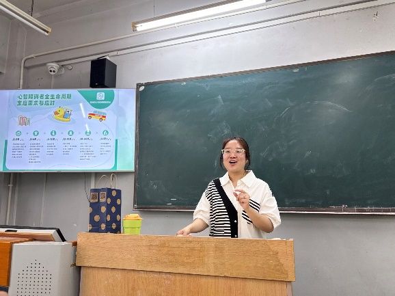 为强化学生的实践认知,崔佳鼓励学生进行角色扮演,体验心智障碍者生活情境,尝试设计适配其需求的活动方案。她提到:“陪伴本身就是意义。社工的价值在于用专业方法,让陪伴转化为可持续的支持力量。”此外,崔佳结合润禾机构多年的服务经验,详细阐释了心智障碍群体家庭的多维需求:从早期康复干预到适龄教育支持,再到成年后的社会融入与家庭喘息服务。润禾通过“家庭支持计划”“社区倡导活动”等多元化服务,为心智障碍者及家庭提供持续性援助,这一实践模式为社工学生提供了重要参考。