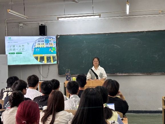 课程伊始,崔佳校长以“残疾人的样子?”为互动议题,引发学生对心智障碍群体的思考。并通过解析“残废”“残疾”“残障”等概念的历史演变,崔佳强调当代社会应从“缺陷视角”转向“权利视角”,以平等、尊重、包容的态度对待心智障碍者。崔佳在系统讲解心智障碍类型时,重点剖析了孤独症谱系障碍、唐氏综合征、智力障碍等群体的核心特征。同时运用《篮球冠军》《海洋天堂》等影视案例,直观呈现了这一群体在家庭与社会中的真实处境,呼吁学生以专业视角打破偏见。