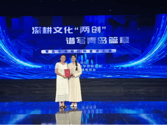 青岛市首届社科宣讲大赛自8月份启动以来,受到了社会各界的广泛关注。共收到来自60多家单位的近120组选手的踊跃报名,经过层层选拔,最终共有10组优秀选手脱颖而出,于9月20日在青岛市广播电视台800平米演播大厅进行了巅峰对决。在这场汇聚了众多精英的宣讲盛宴中,我校学子黄嫣然凭借其独特的视角和深情的讲述,赢得了评委和观众的一致好评,荣获此次大赛的三等奖。