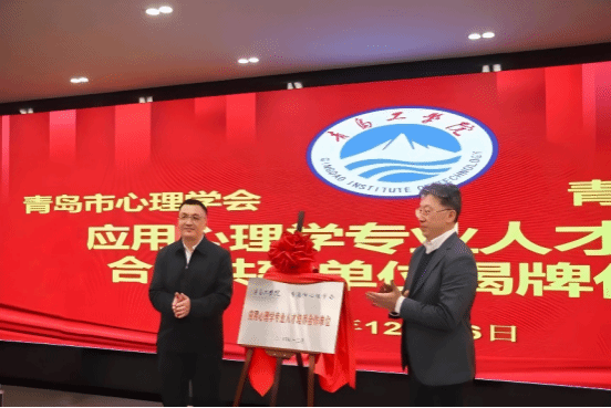 在双方代表的共同见证下,李占军与郑洪利分别代表学校、学会签约,并携手为“应用心理学专业人才培养合作共建单位”揭牌。