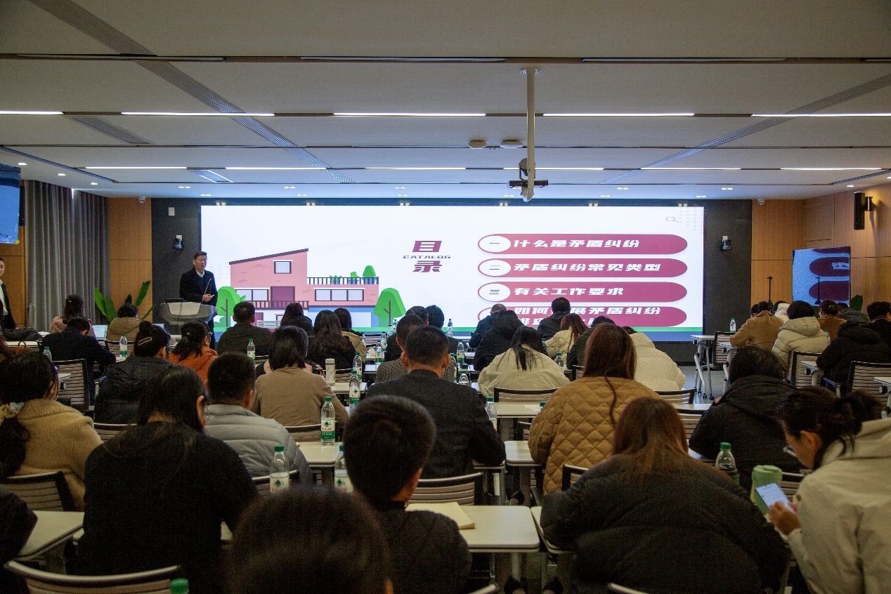 市司法局人民参与和促进法治科科长朱怡霏深入讲解了新时代人民调解制度和实际应用理论。朱科长详细介绍了人民调解制度的起源、发展历程及其实践成效,并分析了新时代下人民调解工作面临的新挑战与新机遇。