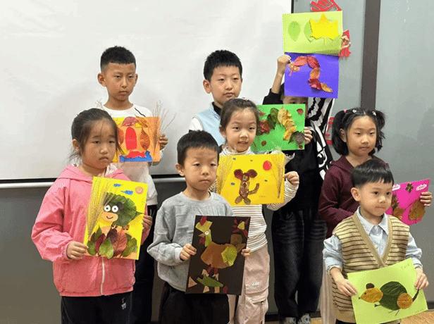 活动尾声,小朋友们带着自己亲手制作的“生肖叶画”作品合影留念,每个人的脸上都洋溢着满足和喜悦的笑容。本次活动通过树叶画这一自然与艺术结合的形式,引导小朋友们关注自然、热爱自然,培养他们的环保意识与可持续发展观念。同时,通过十二生肖的展示和介绍,也让小朋友们感受到了中国传统文化的博大精深和独特魅力,激发了他们学习传统文化的兴趣与热情。