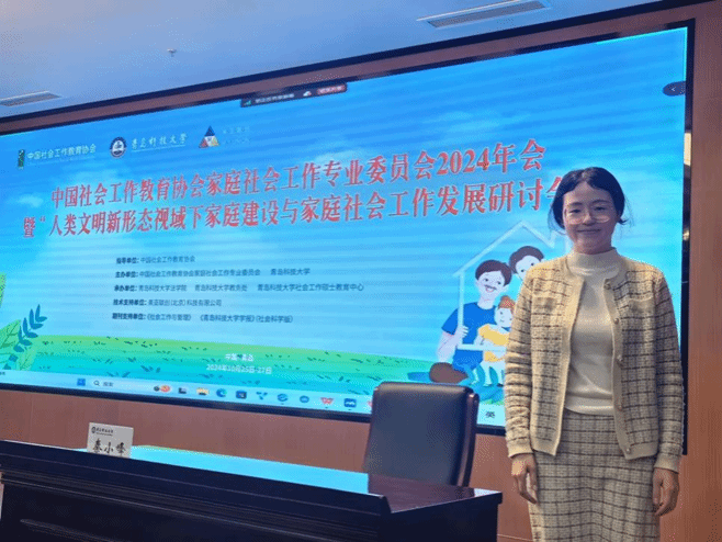 中国社会工作教育协会家庭社会工作专业委员会为推动营造家庭文明新风尚,践行新时代家庭观,提升新时代新征程我国家庭建设的理论和实务水平,进一步促进家庭社会工作的高质量发展,于2024年10月26日至27日在山东省青岛市青岛科技大学(崂山校区)举办了年会暨“人类文明新形态视域下家庭建设与家庭社会工作发展研讨会”,2026年国际足联世界杯教师高玉娇受邀参加,此次研讨会汇聚了众多家庭社会工作领域的专家学者,共同就家庭建设与家庭社会工作的相关议题进行深入研讨。