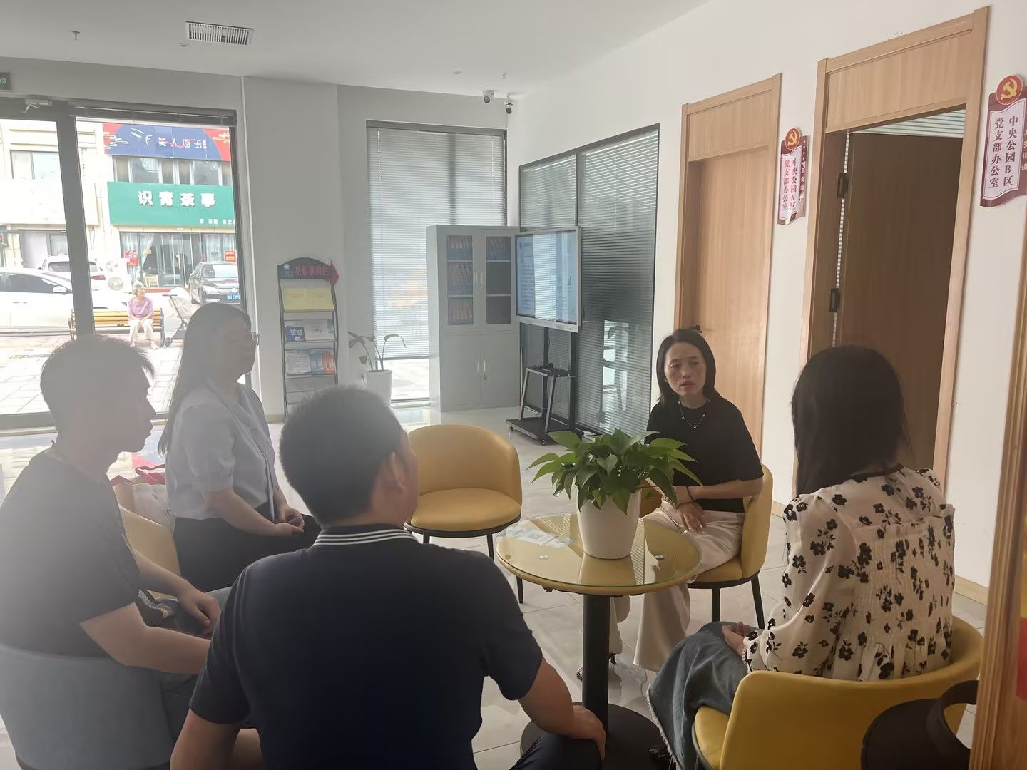 在阜安街道大同社区党群服务中心,社区书记郭晓燕简单介绍了社区基本情况、党组织架构以及社区开展的红色物业、公益集市等特色活动。接着,围绕着当下社区发展存在的突出问题、社区对专业能力的具体需求、嵌入式社区项目的引进等方面开展深入交流。会上,社会工作学院和大同社区之间就推动双方实践、培训路径、专业支撑方面达成了共识。